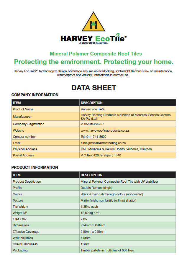 At Southern Cross Roofing, we are proud to offer Harvey EcoTiles – a durable, lightweight, and eco-friendly roofing solution designed for modern living. Made from high-quality recycled materials, these tiles combine strength with sustainability, giving homeowners and developers a reliable alternative to traditional roofing products. Harvey EcoTiles are resistant to harsh weather conditions, require minimal maintenance, and provide excellent thermal performance, making them a smart investment for both residential and commercial projects.